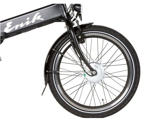 Le vélo électrique pliable noir Enik 250W 20 pouces est équipé d'un moteur de 250W/36V avec indicateur digital.