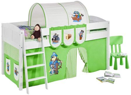 Lit superposable blanc et rideau marron Pirate 90x190 cm