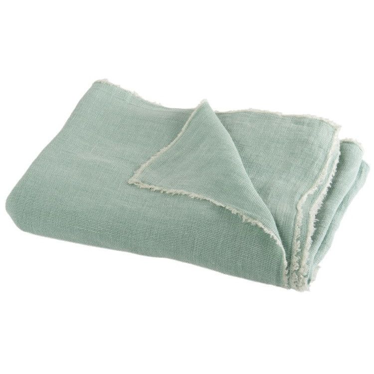 Ce beau plaid délavé est léger et doux, il est fait en tissu 80% coton et 20% lin. Sa couleur vert menthe apportera de la douceur à votre espace.