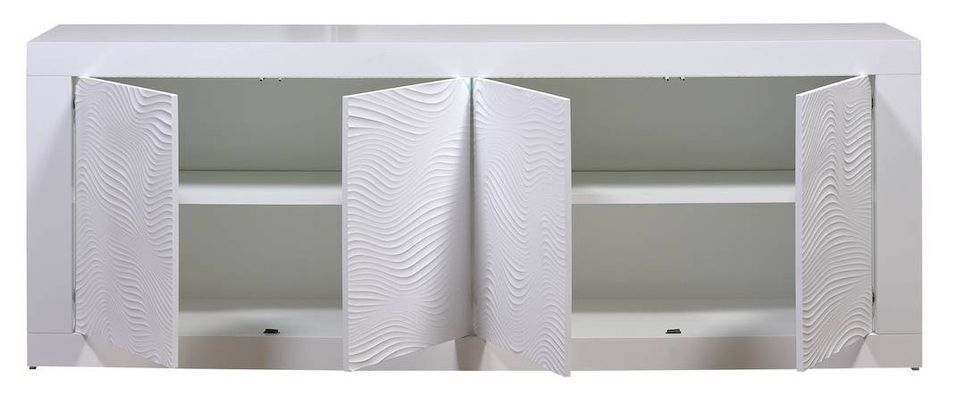 Buffet éclairage à Led 4 portes bois laqué blanc à reliefs Kala 220 cm