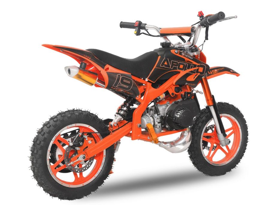 La moto cross bleu pour enfant version thermique 49cc 10 pouces proposée avec un démarreur électrique et un à lanceur.