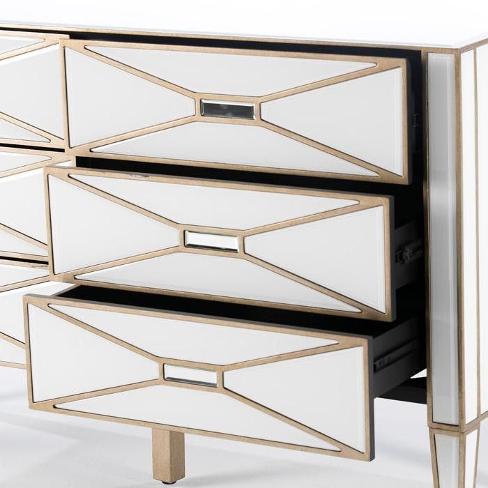 Commode 6 tiroirs miroir blanc et bois doré Grecy