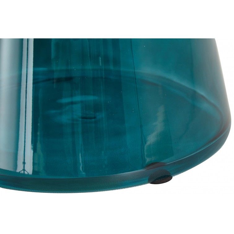 Table basse ronde design verre trempé bleu et noir Kloche 75 cm
