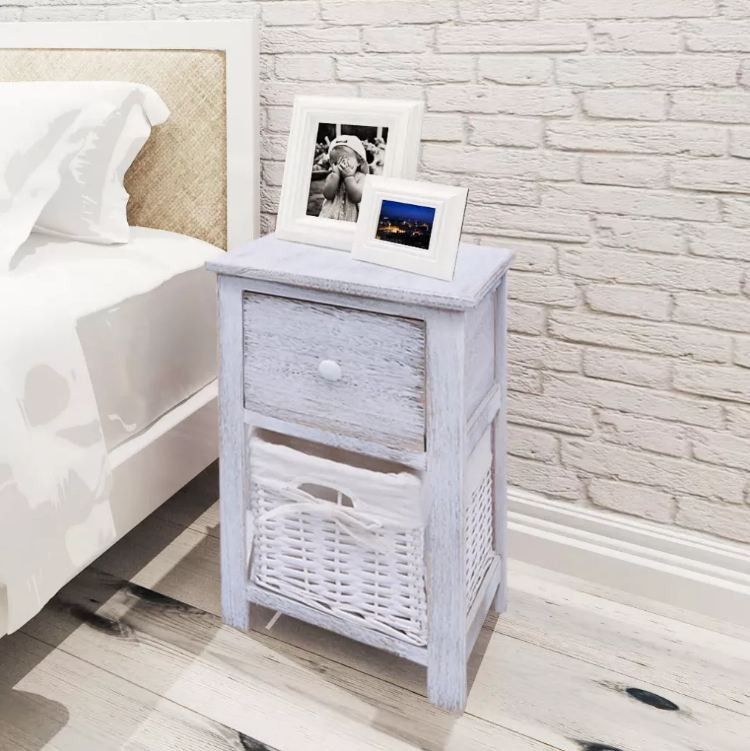 Cette table de chevet avec son style originale est composé d' 1 tiroir et 1 panier pour faciliter vos rangements. Elle est fabriqué en bois de paulownia massif légèrement peinte en blanc qui fait ressortir son style authentique. Il trouvera surement sa place dans votre intérieur pour faire ressortir le décor.