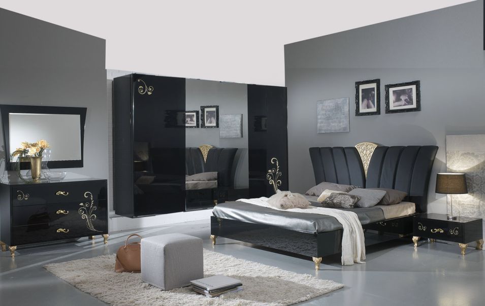 Lit design bois laqué noir et doré Jade 180x200 cm