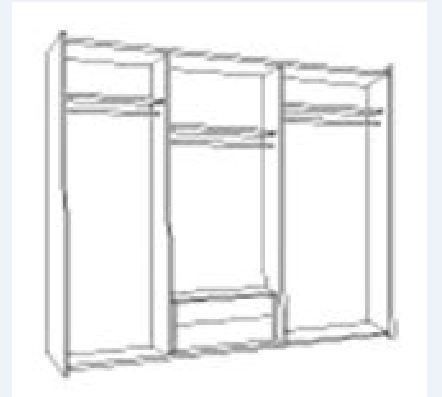 Quatre portes battantes : L'armoire est équipée de quatre portes battantes, dont les deux centrales sont dotées de miroirs, offrant un espace généreux pour votre garde-robe.