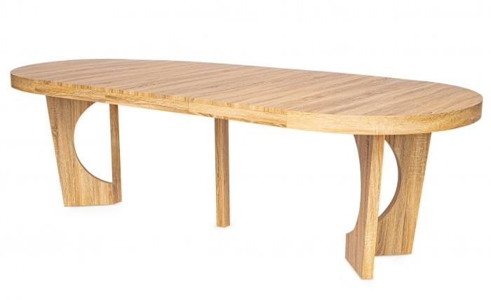 Cette élégante table ronde extensible en bois clair ajoutera une touche d’originalité à votre séjour. Son plateau et ses pieds sont en panneau de particule à densité moyenne.