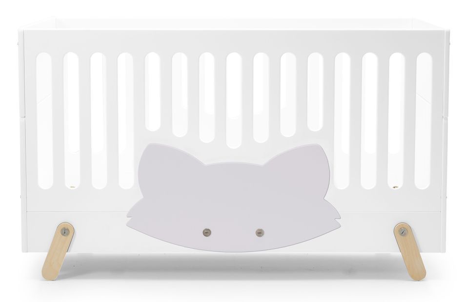 Lit bébé évolutif laqué blanc et motif violet clair Fox 70