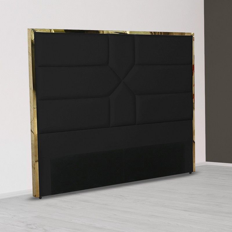 Cette jolie tête de lit est parfaite pour embellir votre chambre. Elle est faite en simili cuir noir avec un contour effet laiton, ce qui lui confère design unique et apportera une touche de modernité à votre déco.