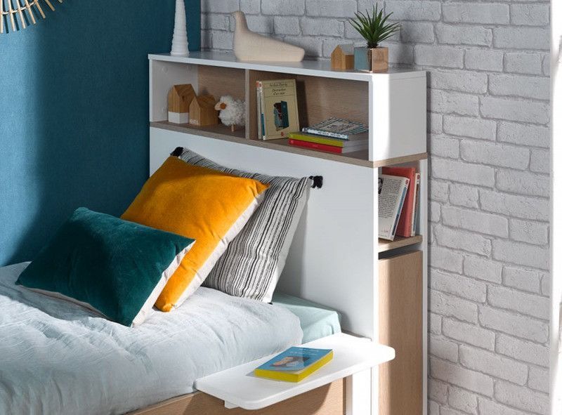 Tête de lit 2 niches bois blanc et chêne clair Nomade 90 cm