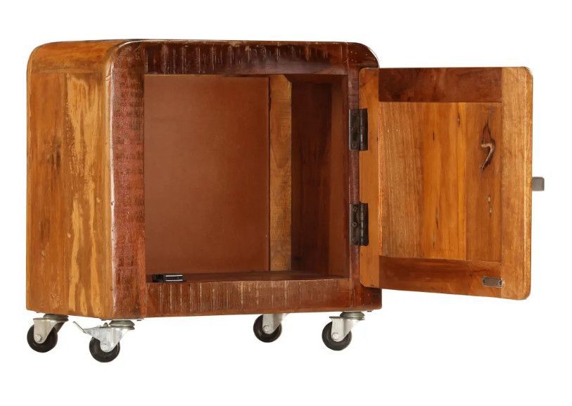 Table de chevet sur roulettes 1 porte bois massif recyclé Moust