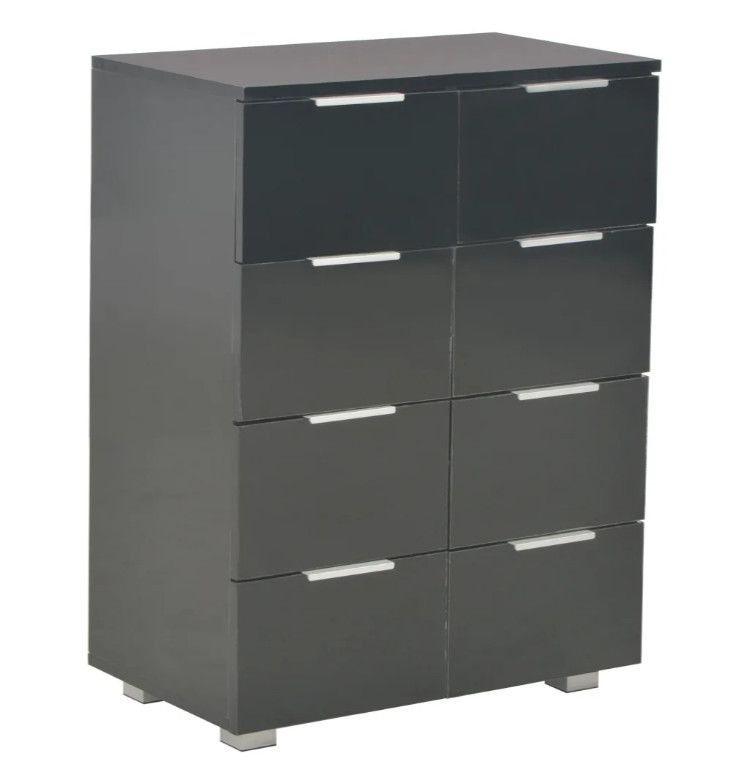 Cette élégante commode est fabriquée entièrement en panneau de particule à densité moyenne d'excellente qualité. Grâce à ses 8 tiroirs, elle vous offre un bel espace de rangement. Son plateau vous garantit un emplacement supplémentaire pour mettre en valeur des objets ou pour ranger vos magazines.