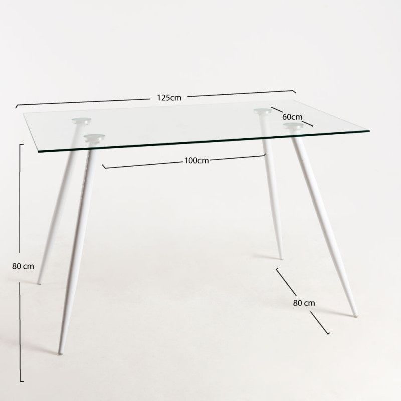 Table verre trempé et pieds métal blanc Barrio 125 cm