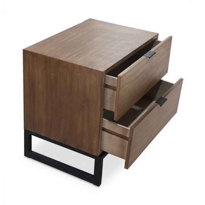 Chevet 2 tiroirs chêne clair et métal noir Baktoo