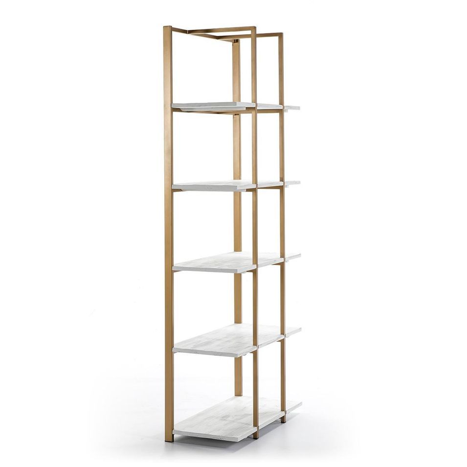 Bibliothèque 5 étagères marbre blanc et métal doré
