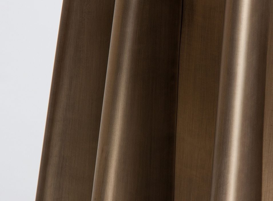 Piètement architectural : acier doré mat, lignes graphiques et stabilité exemplaire.