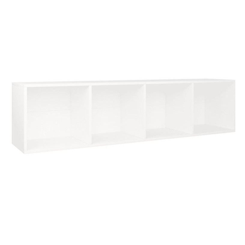 Ce meuble TV est parfait pour embellir votre intérieur, il pourra également vous servir de bibliothèque. Il est fait en bois MDF blanc avec 4 compartiments.