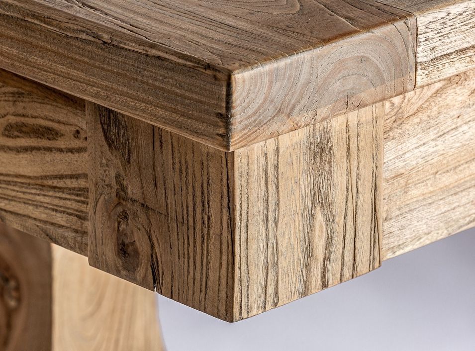 Fabriquée avec une expertise artisanale exceptionnelle, la table à manger Bukila est réalisée en bois d'orme massif, sélectionné pour sa beauté naturelle et sa durabilité. Son plateau d'une épaisseur luxueuse de 13 cm apporte une touche de caractère distinctif à votre salle à manger, tandis que sa couleur bois naturel évoque une élégance intemporelle.