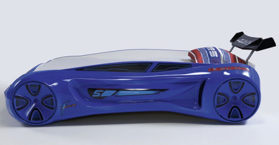 Lit voiture enfant futuriste bleu à Led avec effets sonores 90x190 cm