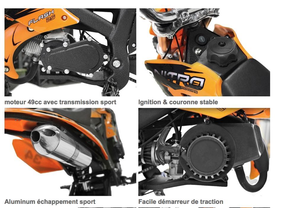 Son moteur 2T 49cc mono-cylindre refroidi par air délivrant une puissance de 2,5cv (1,8kw)offre de belles performances et des garanties de solidité et defiabilité.