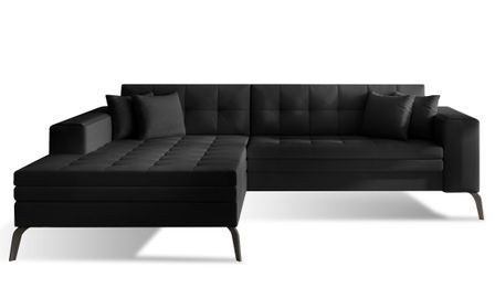 Canapé convertible d'angle gauche simili cuir noir Suzy 272 cm