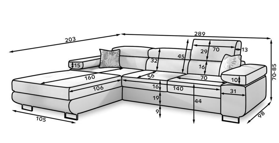 Assise : Largeur 198 cm | Profondeur 56 cm | Hauteur 44 cm