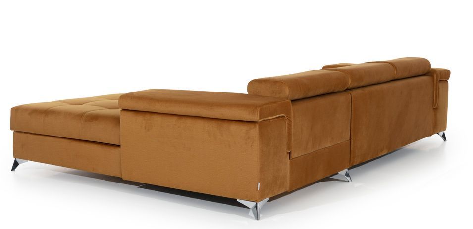Canapé d'angle convertible velours appuis-tête réglables RIKARO - Coffre et pieds acier chromé