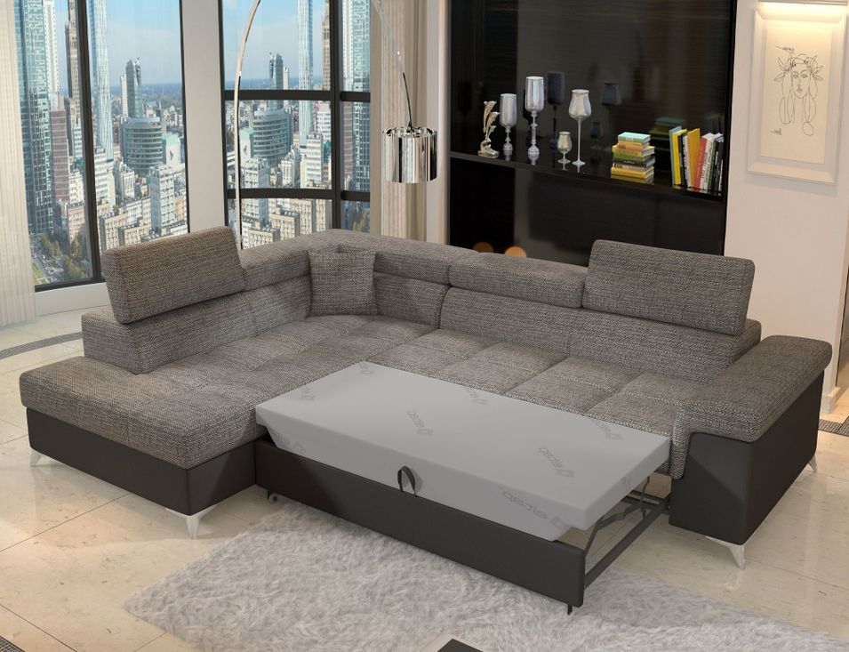 Canapé d'angle convertible Bi matière MARIDO - Coffre et appuis-tête réglables
