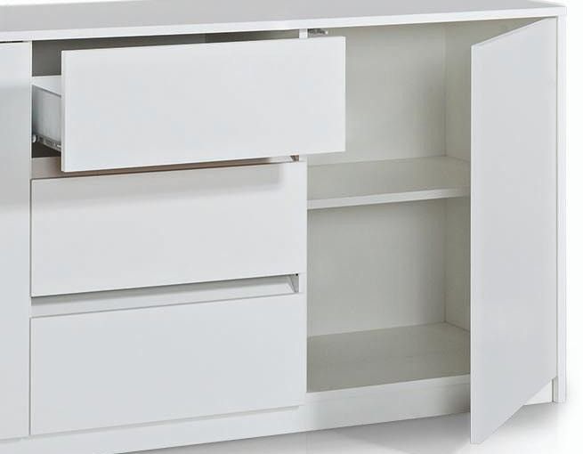 Buffet 2 portes 3 tiroirs bois mélaminé blanc Narea L 180 cm