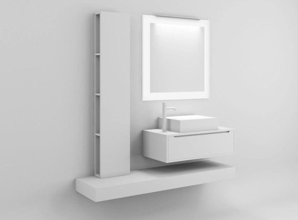 Ce meuble suspendu de salle de bain est proposé avec un style moderne et pratique, il est fait en bois laqué blanc mat et dispose d' un tiroir pour ranger tout le nécessaire à votre bien-être quotidien.