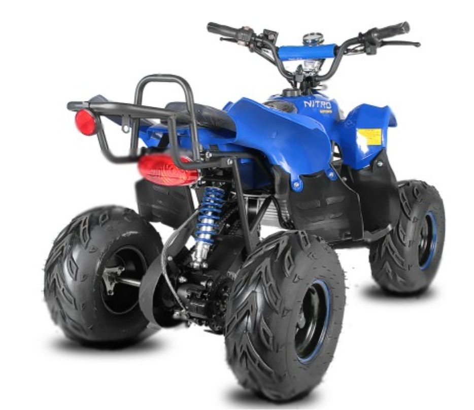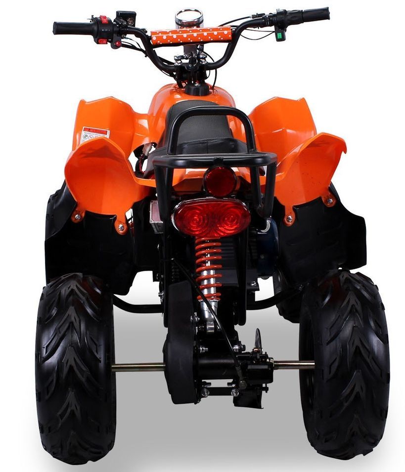 Il est monté sur un châssis XL et des pneus 6 pouces. Il est apparenté à un quad enfant 110cc.