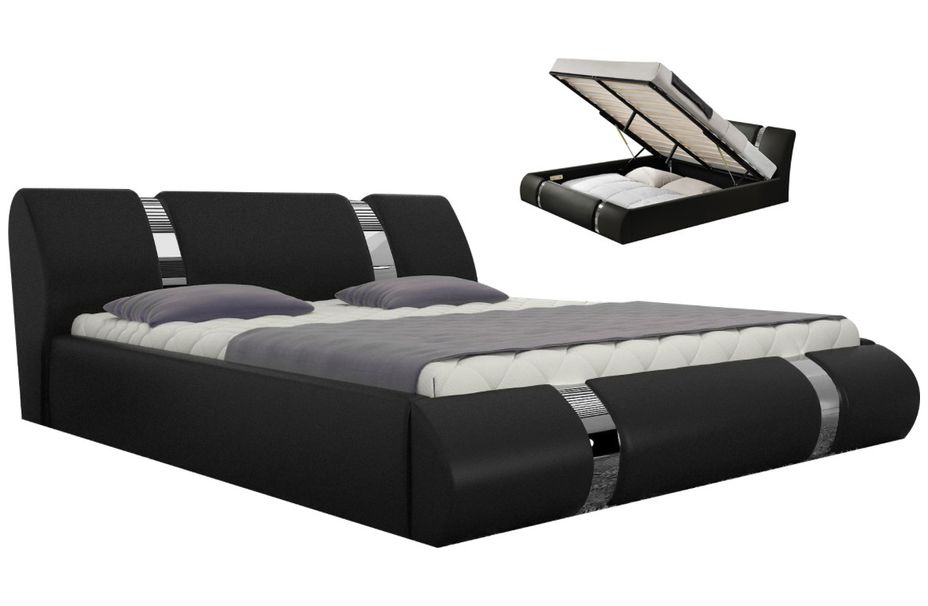Lit design coffre 140x190 cm similicuir noir et métal Ange