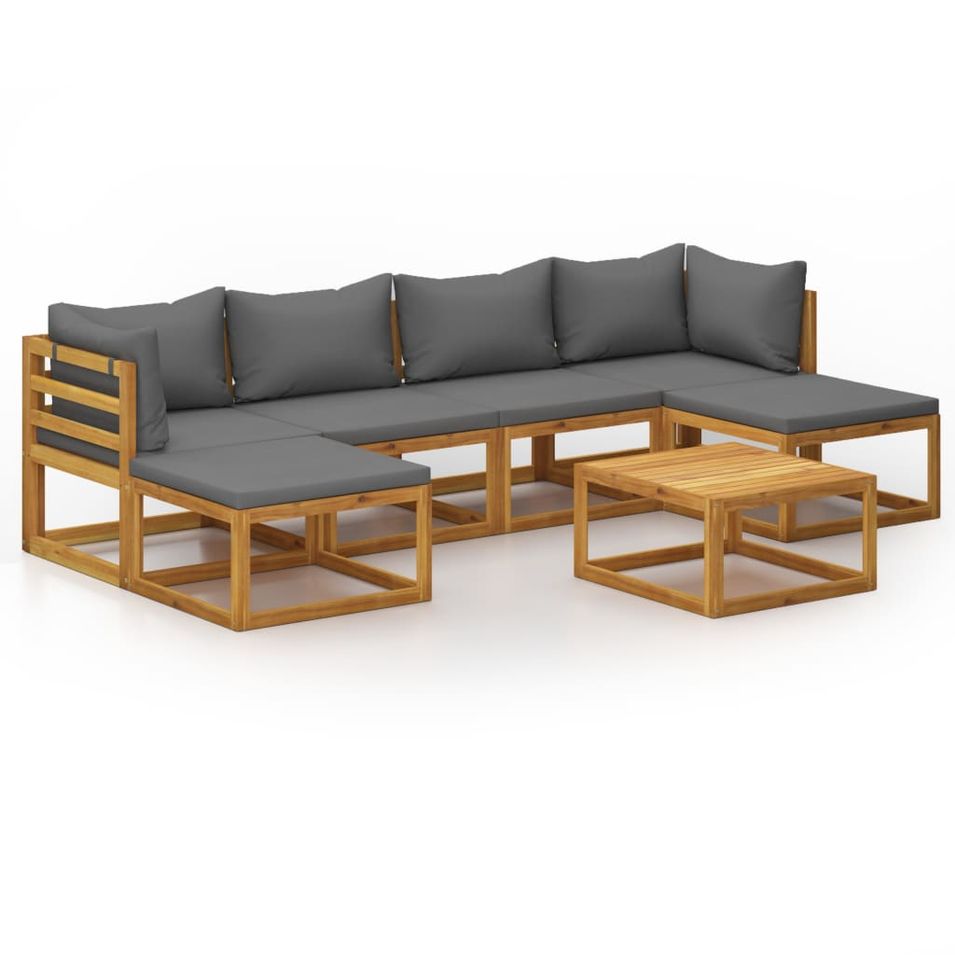 Salon de jardin 7 pcs avec coussin Bois d'acacia solide 4