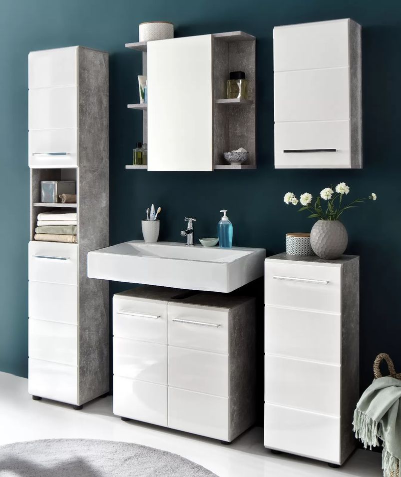 Armoire de toilette à LED 1 porte mélaminé blanc et gris avec miroir Lenny