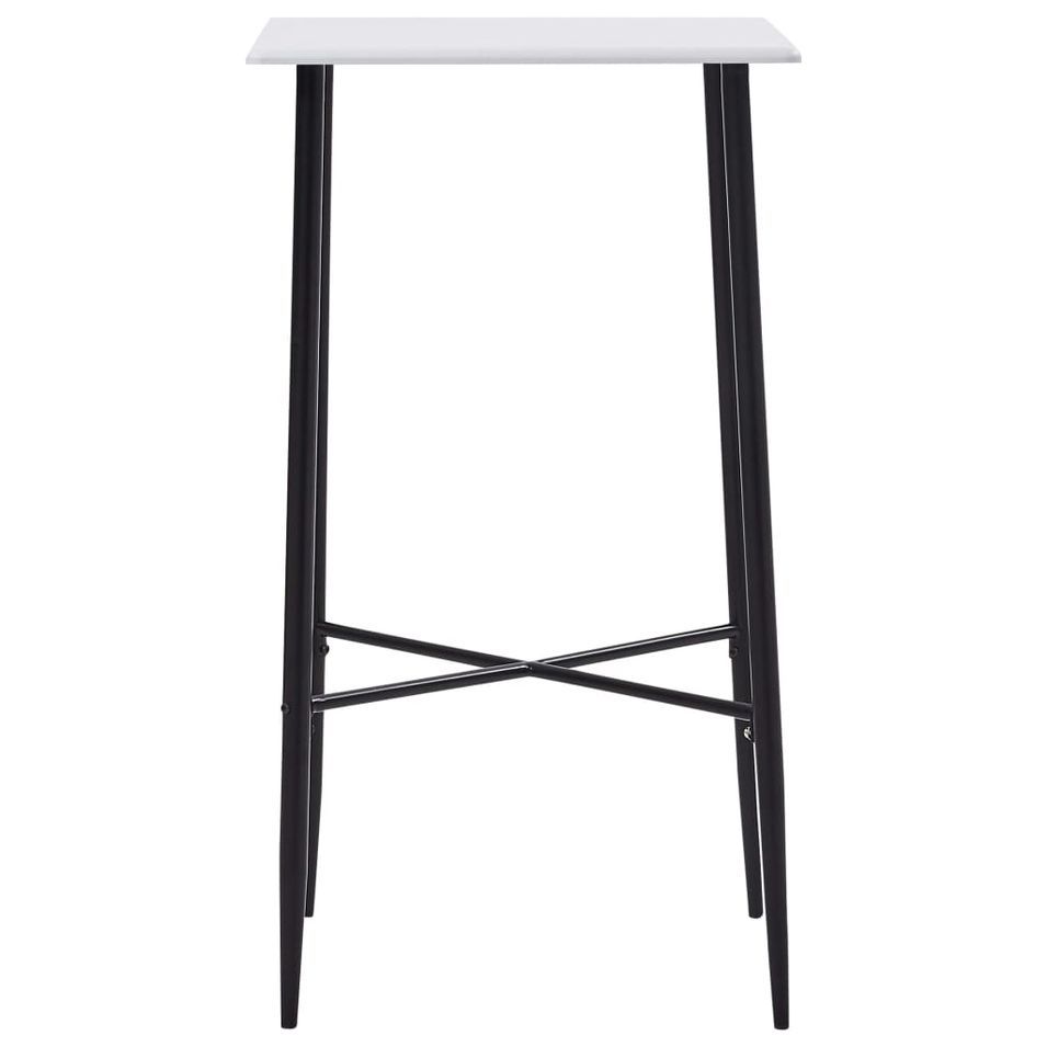 Avec un design moderne et contemporain, notre ensemble de bar est idéal pour les maisons, jardins, bars, pubs ou restaurants modernes. Son design épuré et contemporain complétera toute décoration intérieure. Le dessus de table est en MDF qui est facile à nettoyer. Le cadre en acier enduit de poudre ajoute à la stabilité et à la solidité de la table de bar. Les chaises de bar ont une assise ergonomique avec dossier intégré dans un look moderne et courbé. De plus, elles sont faciles à monter. Notre ensemble de bar est idéal pour savourer un verre de vin au bar, manger quelque chose au comptoir ou pour l'utiliser comme siège supplémentaire lorsque vous avez des invités. La livraison comprend une table de bar et 4 chaises de bar.