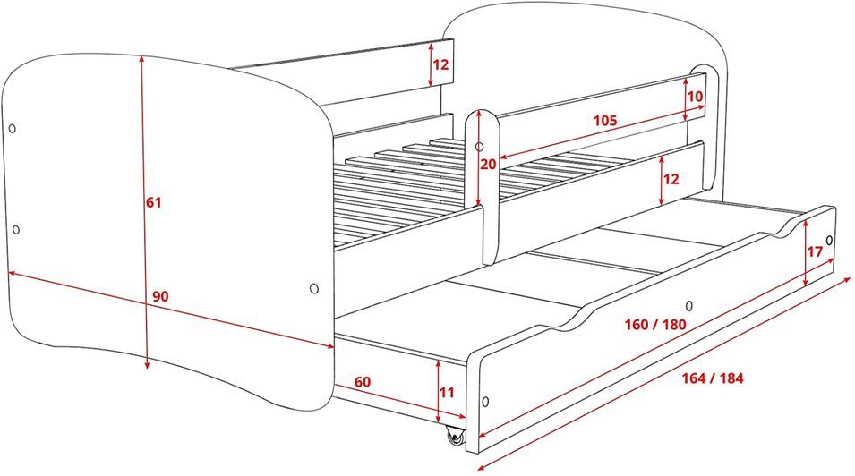 Ce lit enfant livré avec un sommiers à lattes et une barrière de sécurité est idéale pour une transition entre le lit bébé et un lit d'enfant. Votre enfant sera ravi par ce modele qui se distingue par un graphisme d'une princesse à cheval de couleur blanc et rose.