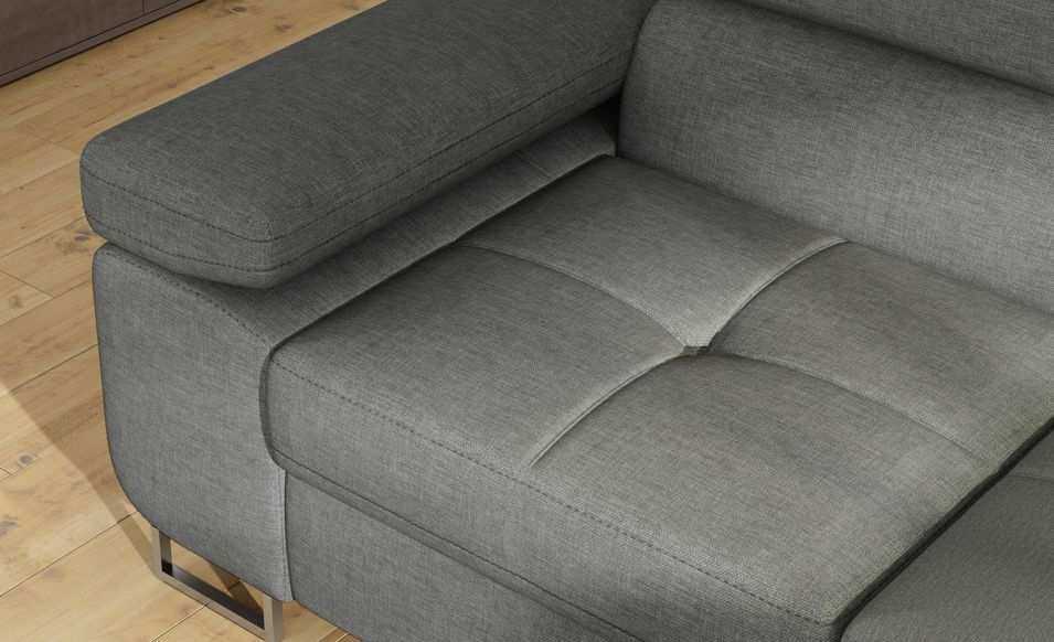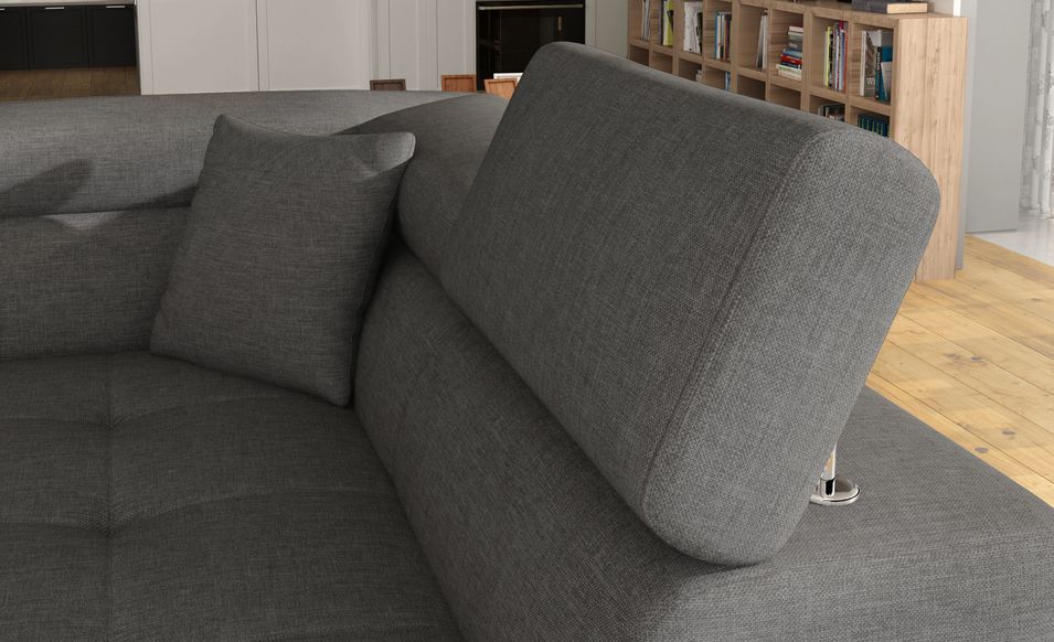 Canapé d'angle convertible tissu MARKA - Coffre et appuis-tête réglables