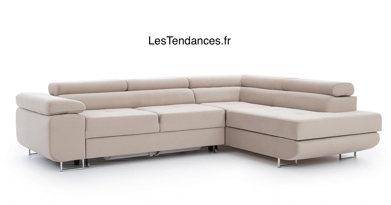Canapé d'angle convertible tissu MARKA - Coffre et appuis-tête réglables