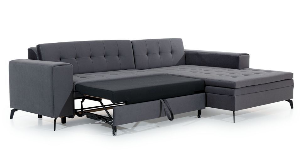 Canapé convertible capitonné angle gauche tissu marron et pieds métal noir Lazor 295 cm