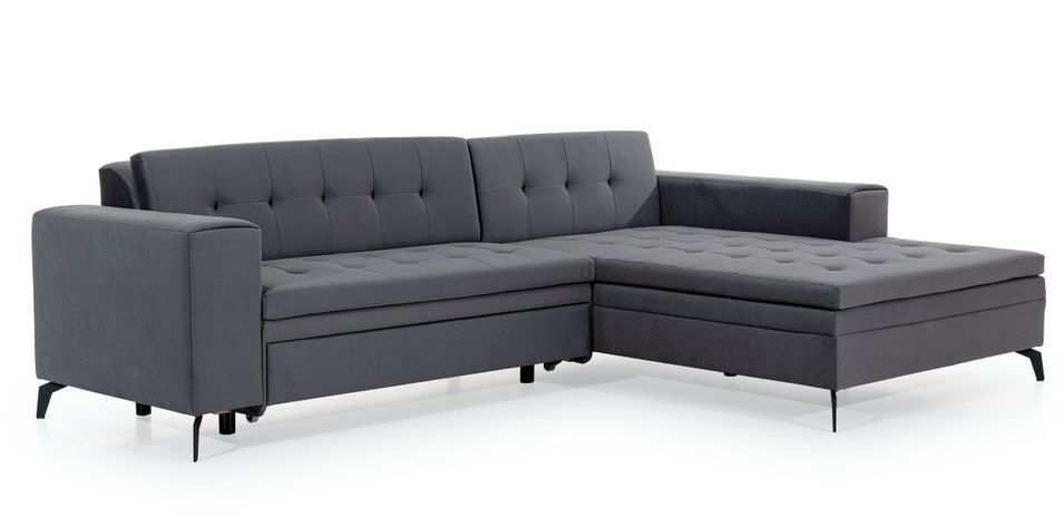 Canapé convertible capitonné angle droit tissu anthracite et pieds métal noir Lazor 295 cm