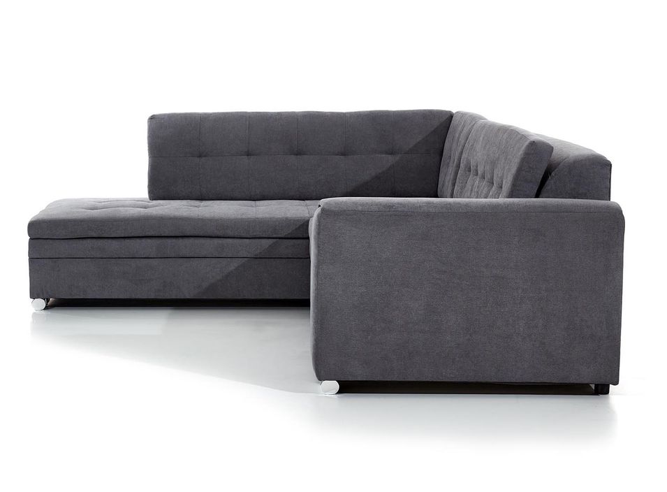 Canapé convertible angle gauche tissu gris et chromé Pika 260 cm