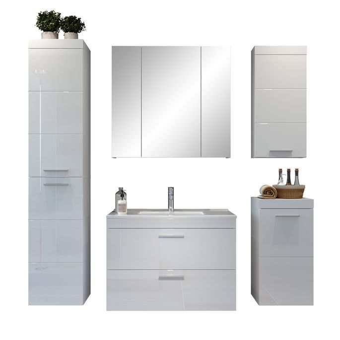 Colonne murale de salle de bain en bois mélaminé blanc brillant de la collection Divone.