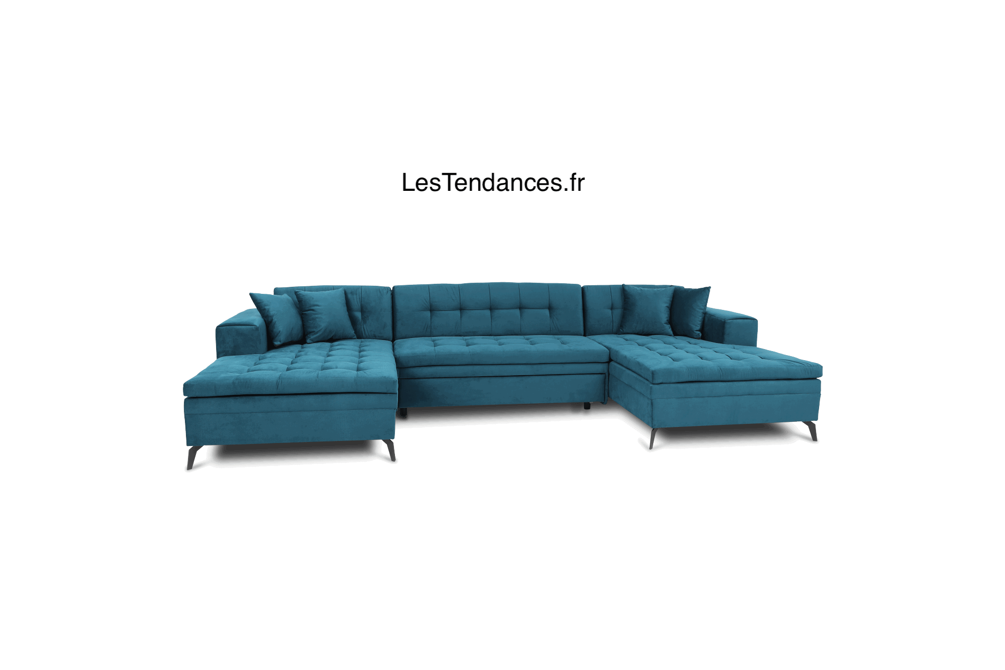 Canapé panoramique convertible en tissu ROMY - Pieds métal noir