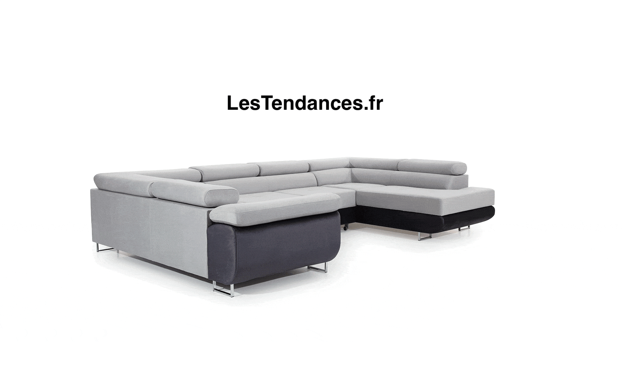 Canapé convertible panoramique TOVY tissu et simili cuir - têtières réglables