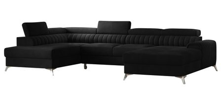 Canapé en U convertible KALANTE velours - Coffre de rangement et appuie-têtes réglables