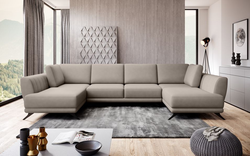 Offrez à votre salon une pièce maîtresse qui allie élégance et fonctionnalité avec le canapé panoramique LARGOS. Pensé pour les espaces généreux, il incarne un style résolument contemporain avec ses lignes équilibrées, son allure généreuse et ses finitions soignées. Son format en U favorise la convivialité, tout en offrant un confort remarquable pour toute la famille.