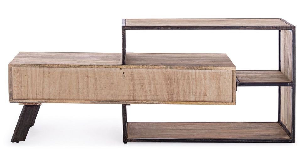 Très design, ce meuble TV apportera de la modernité à votre intérieur. En bois de manguier recyclé avec des pieds en acier, il est robuste et soutiendra votre télévision avec panache. Il est muni de 2 tiroirs et de 2 niches.