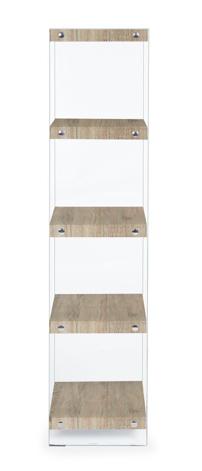 De couleur claire, cette étagère fera de votre demeure un lieu encore plus beau. ses planches sont revêtues de papier mélaminé rappelant le bois et ses côtés sont en verre trempé avec une épaisseur de 12 mm.