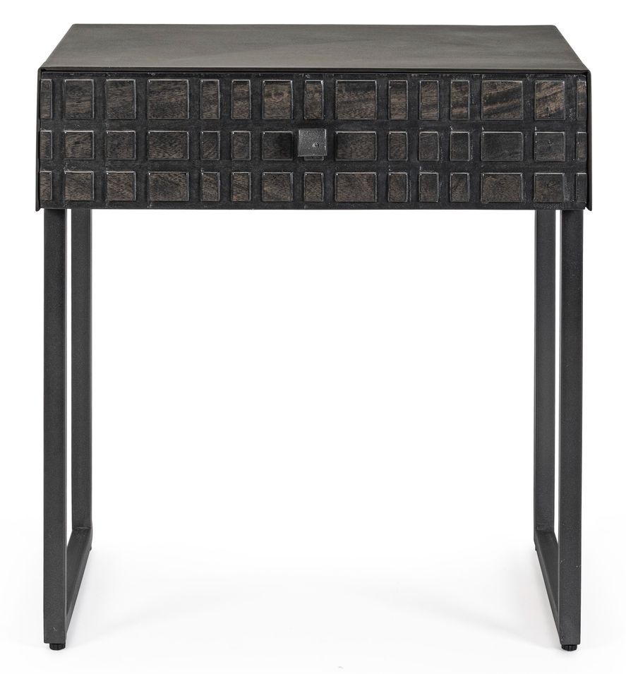 Table d'appoint 1 tiroir acier et bois de manguier noir Dody 50 cm