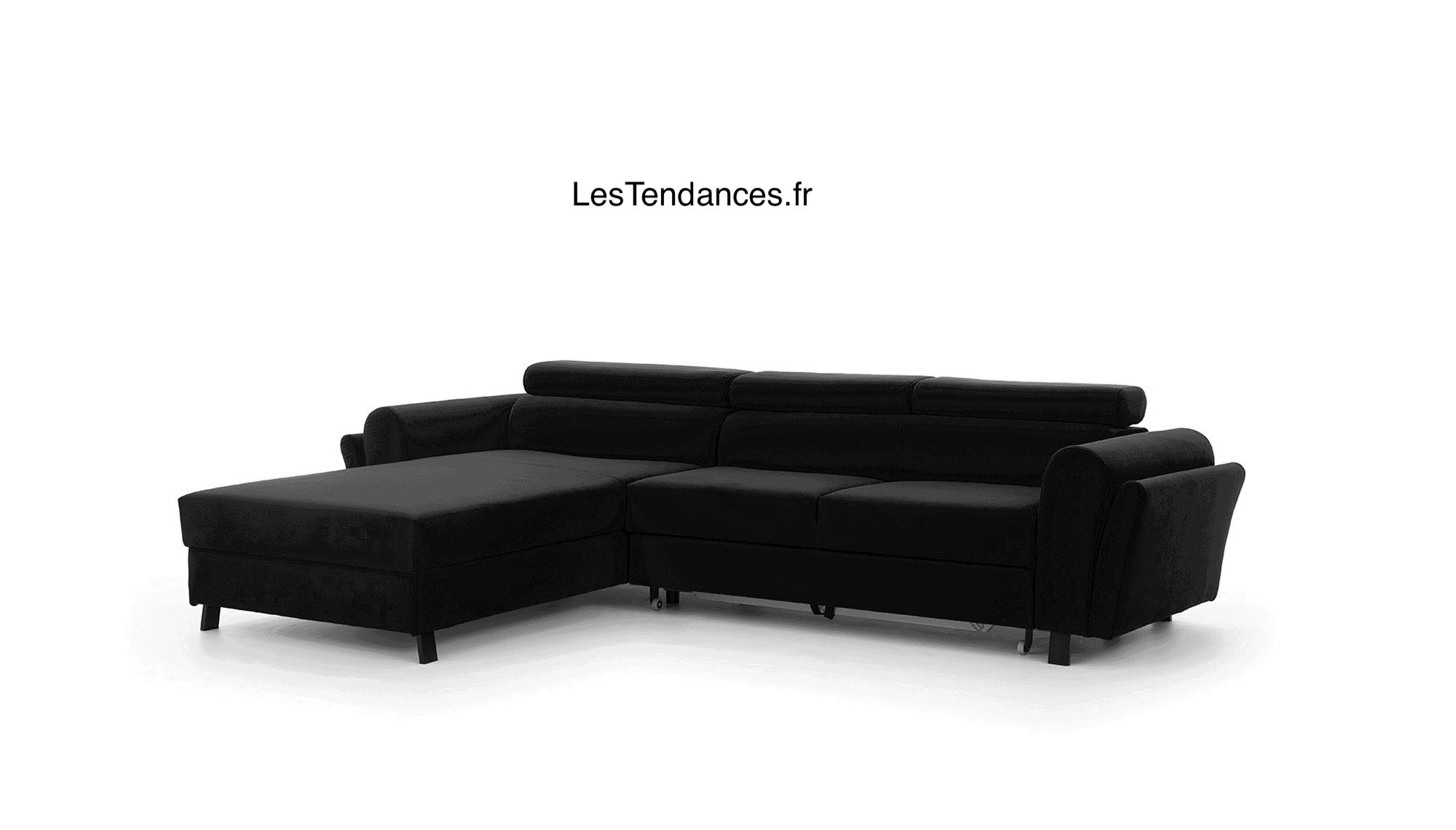 Canapé d’angle convertible MAZALI velours - Appuis-tête réglables et rangement